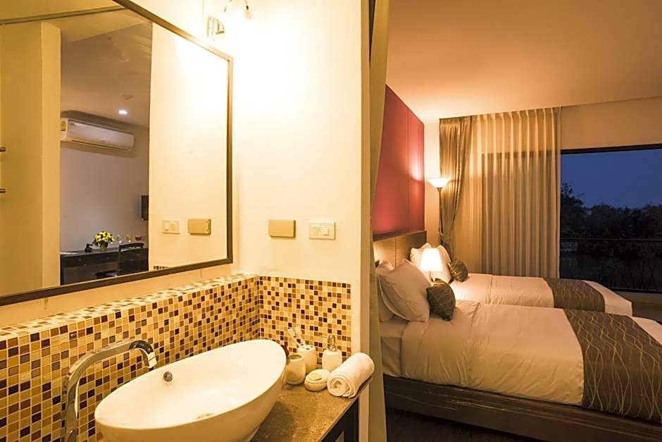 This twin room's special features are the pool with a view and the sauna. The spacious twin room features air conditioning, soundproof walls, a terrace with pool views as well as a private bathroom boasting a walk-in shower. The unit has 2 beds.